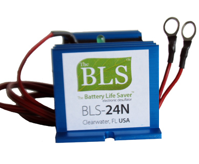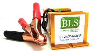 For 12 and 24 volt battery systems and vehicles with multiple batteries. Can be installed permanently on a battery system. The system should be charged regularly. Can be used to rejuvenate old batteries. Similar to the BLS-12/24B, but comes with 3/8" eye rings for attachment to the battery terminals.